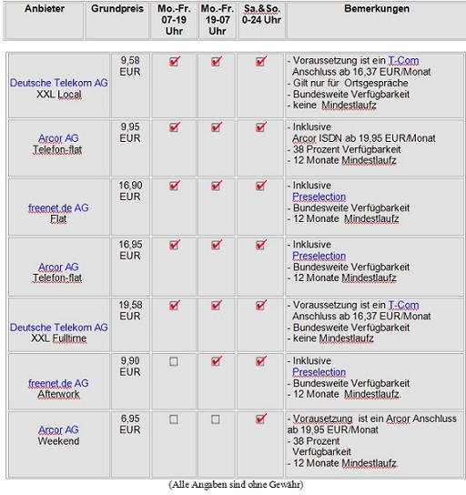 Alle Angaben ohne Gewähr. Genaue Preise und Leistungsbeschreibung bitte bei dem jeweiligen Anbieter nachsehen.
